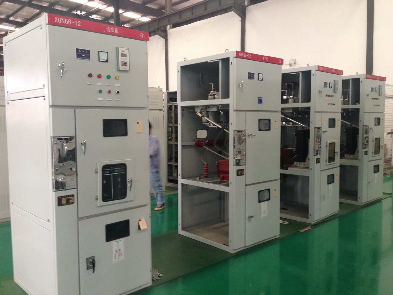 XGN66-12箱型固定式金屬封閉開關設備(簡稱開關柜)用于12kV及以下三相交流50Hz系統(tǒng)中作為接受與分配電能之用,特別適合于頻繁操作的場合,其母線系統(tǒng)為單母線(并可派生出單母線帶旁路和雙母線結(jié)構(gòu))。